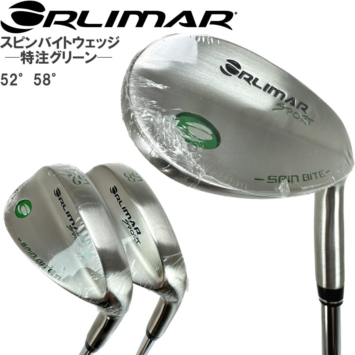 - 1円★オリマー SPORT スピンバイト ウェッジ スチール 52度+58度 2本組★特注グリーン刻印モデル★