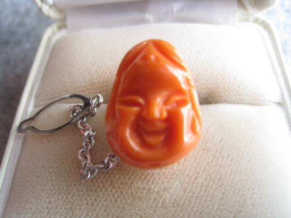 - [SAMU]大粒!! 天然本珊瑚2.0x1.5cm 彫刻タイピン★新品同様!!