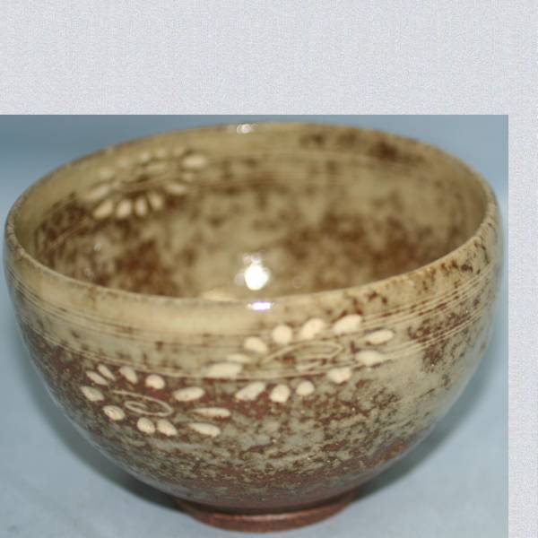 - 直径12㎝茶色と白系抹茶碗 〇J10-28