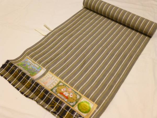 - 新品正絹反物★鹿児島県・本場縞大島紬着尺★グレー地に縞柄です