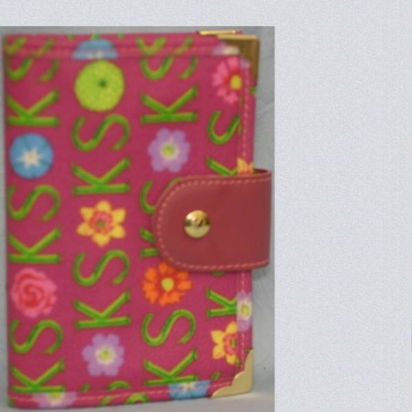 - 女性用紫色地に緑色KSロゴと沢山の花17,3x17㎝ファスナー付財布 250828-1