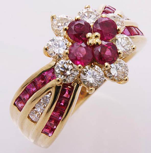 - ke8261◆K18リング ルビー/ダイアモンド フラワーモチーフ 12号