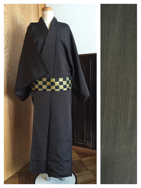 - 【男性 正絹】袷着物 着丈135.5cm 焦げ茶色 縞160~165cm位の方