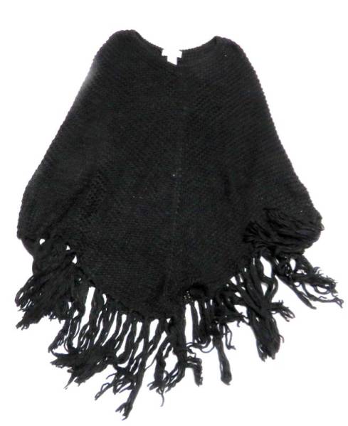- USA70’ヴィンテイージ手編みヒッピーポンチョ黒イタリア製