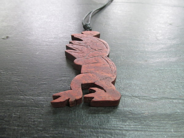 - 花梨ちぢみ杢オイルフィニッシュかえるの肩車動物彫刻ペンダント