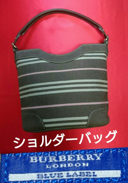 - 【美品中古】 BURBERRY バーバリー ショルダー バッグ ボーダー B006
