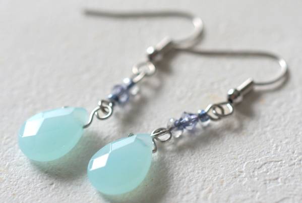 - 新品未使用 しずく型ドロップピアス 乳青色