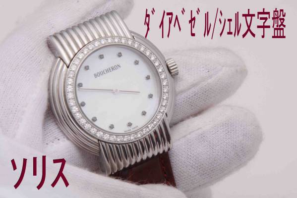 > S-3941★BOUSHERON ブシュロン ソリスダイアベゼル メンズ腕時計/替えバンドLサイズ付き 電池式 クォーツ
