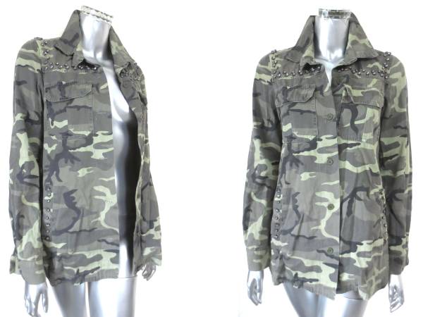> 二点落札で送料無料! Z31 ZARA ザラ ジャケット S レディース アウター 上着 カーキ ブルゾン ビジュー 迷彩 カモフラ コットン 綿