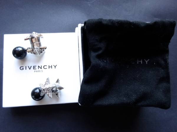 > ● GIVENCHY ジバンシー マグネット ピアス イヤリング 星 ラインストーン 黒 ブラック スワロフスキー シルバー 新品 ユニセックス 丸