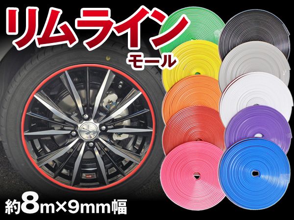 - 全10色 リムラインモール 幅9mm×約8m アクセント ホイール保護