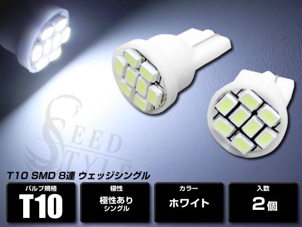 - T10/T16 ウェッジ 超高輝度高拡散 SMD8連 ホワイト 2個セット