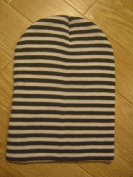 - 即決☆Acrylic Knit 帽 ボーダー柄 レディース メンズ♪白×グレー♪男女兼用♪ポイント消化