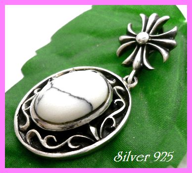 - シルバー925銀のホワイトターコイズ アラベスク ペンダント/十字架バチカン