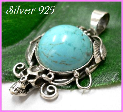- シルバー925銀の天然石ハウライトターコイズonスカル ペンダント/100種以上ALL50%OFF