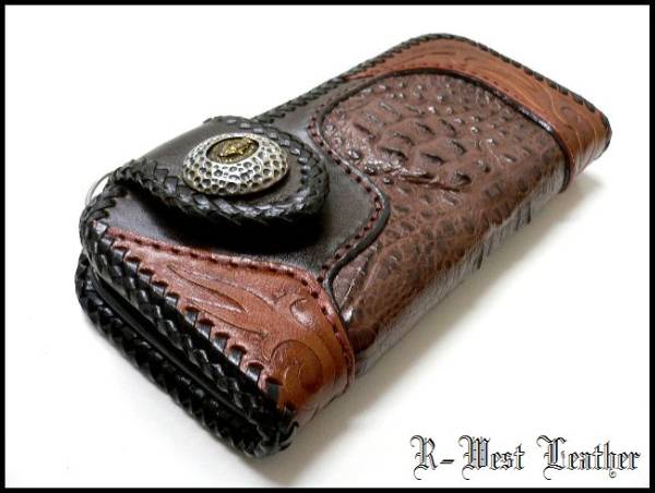 - 牛革×ワニ革クロコダイルこぶ付カービング レザーウォレット 1点のみ/革財布ALL20%OFF