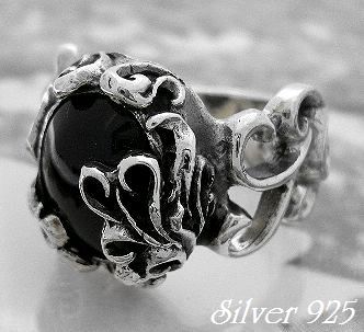 - シルバー925銀の天然石オニキス アラベスク ルージュ リング/17号.20号.23号より