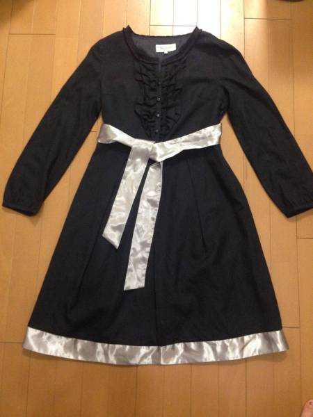 - 新品、SOUP【スープ】の濃紺色ワンピース9号★2480円即決★Mサイズ、リボン付き