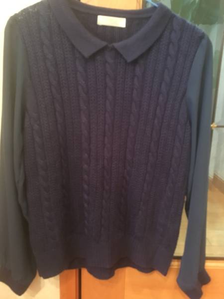 - 美品・異素材・長袖ブラウス・ニット×シースルー袖・ブルー・Mサイズ・200円