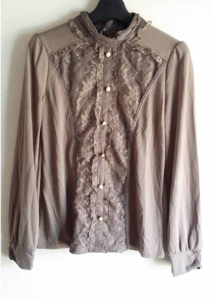 > 428◇ブローチ付スタンド襟プルオーバー モカ 茶 ブラウン axes femme アクシーズ ファム TS33X41