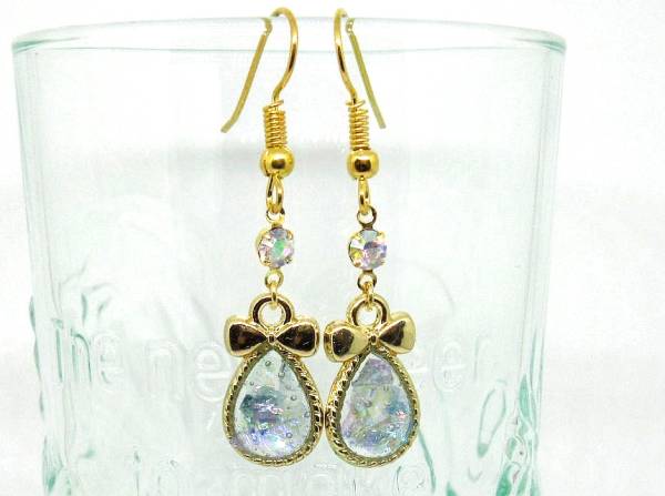 - ★リボンドロップとホロのピアス イヤリング レジン 滴 キラキラ