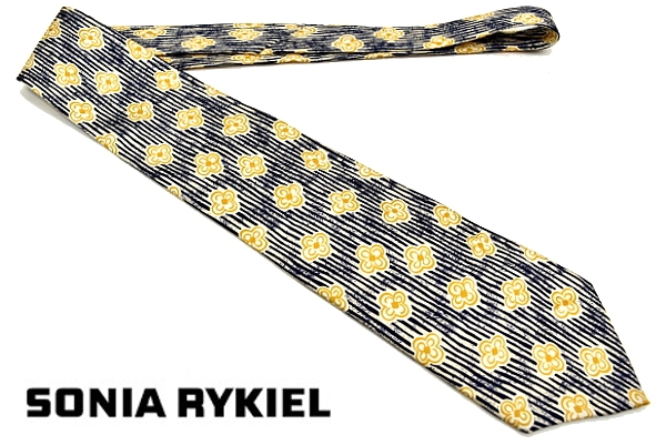 > N583★送料無料★RYKIEL HOMME ソニアリキエル オム★正規品フランス製 メンズ男性 ストライプ×小紋柄 高級シルクネクタイ