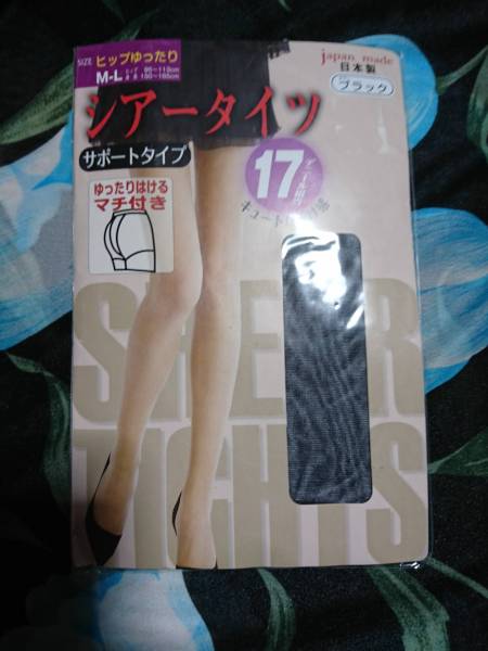 - 未使用 シアータイツ 日本製 黒 キュートな透け感 マチ付き