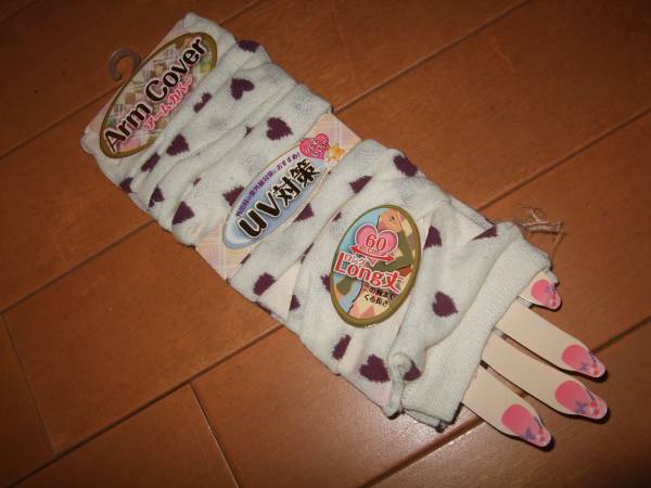 - 新品タグ即決★UV対策アームカバー ハート柄★ロングタイプ60㎝ 二の腕までカバー