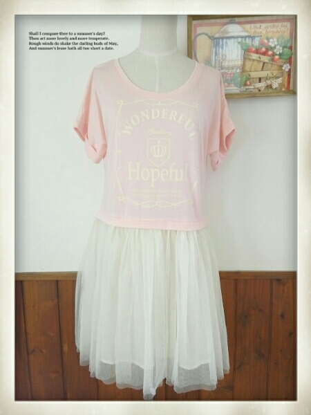 - RETRO GIRL 切り替え バイカラー ワンピース M-Lサイズ位 レディース ゆったり 半袖 レース チュチュスカート ピンク 白 膝丈 B