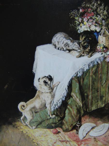 - 送料無料、希少画集画、高級新品額・額装付、猫 ネコ ねこ cat、絵画 油彩画 動物画、109