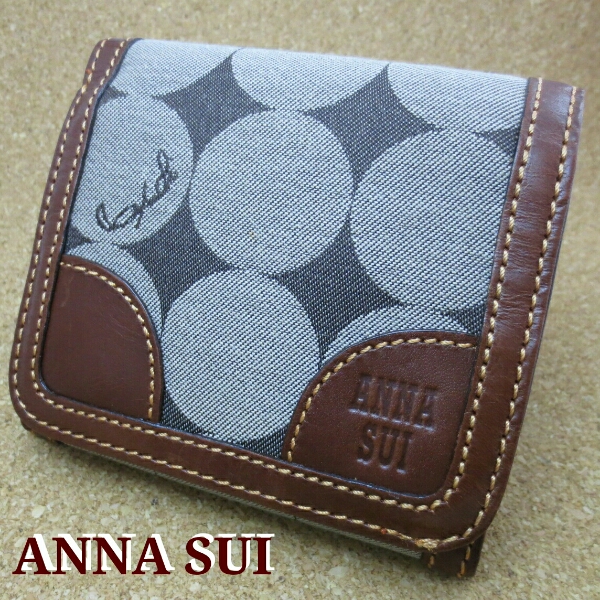 - ANNA SUI アナスイ 3つ折り 財布 ダークブラウン X ベージュ 中古品 304