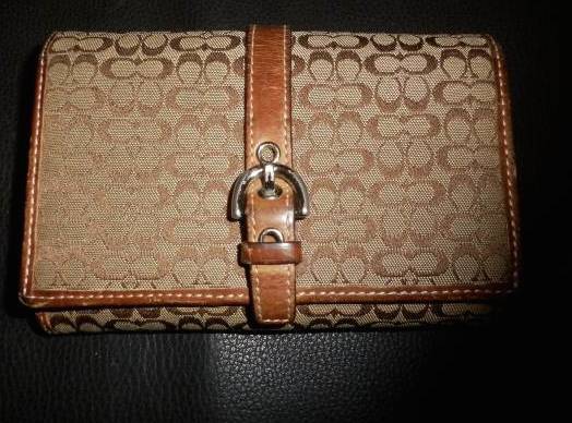 - 良品・COACH ミニシグネチャー 財布 茶系