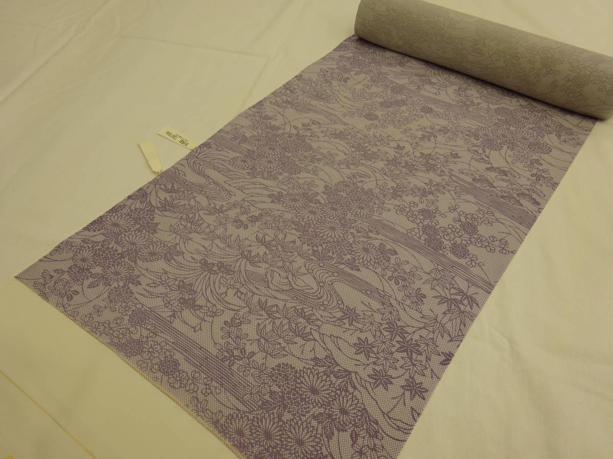 - 夏物★新品・正絹・反物★福井県・春江縮緬・絽小紋着尺★藤紫色地に茶屋辻柄です