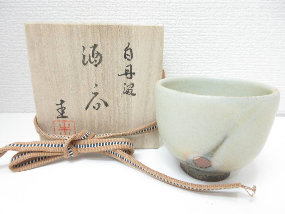 - 未使用品■白丹波 圭 酒呑 酒器 お猪口 ぐい呑 木箱 管理1709 F-2