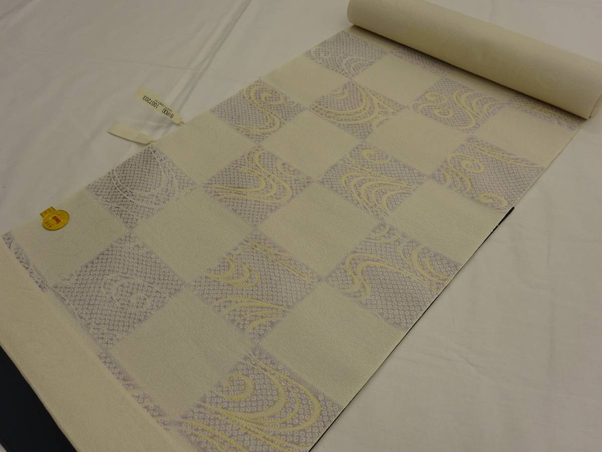 > 新品・未仕立て★京都西陣・弥栄織物製なごや帯★白地に市松柄です