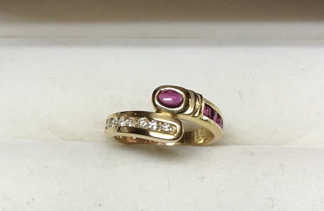 - K18 YG 4.8g ルビー 0.57ct ダイヤ 0.17ct リング 11号