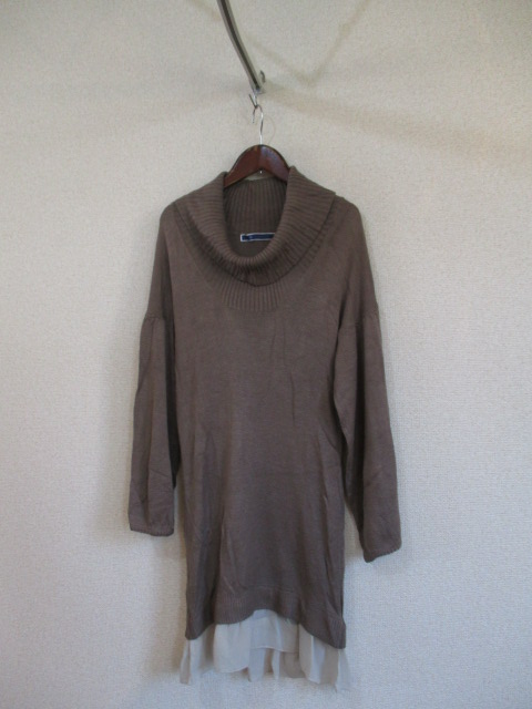 - THE EMPORIUM茶裾シフォン付ニットチュニック(USED)102117②)