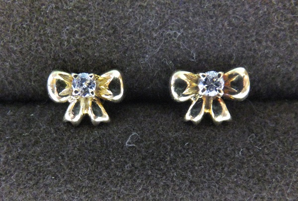 - K18 YG 1.9g ダイヤ 0.08ct リボン ピアス