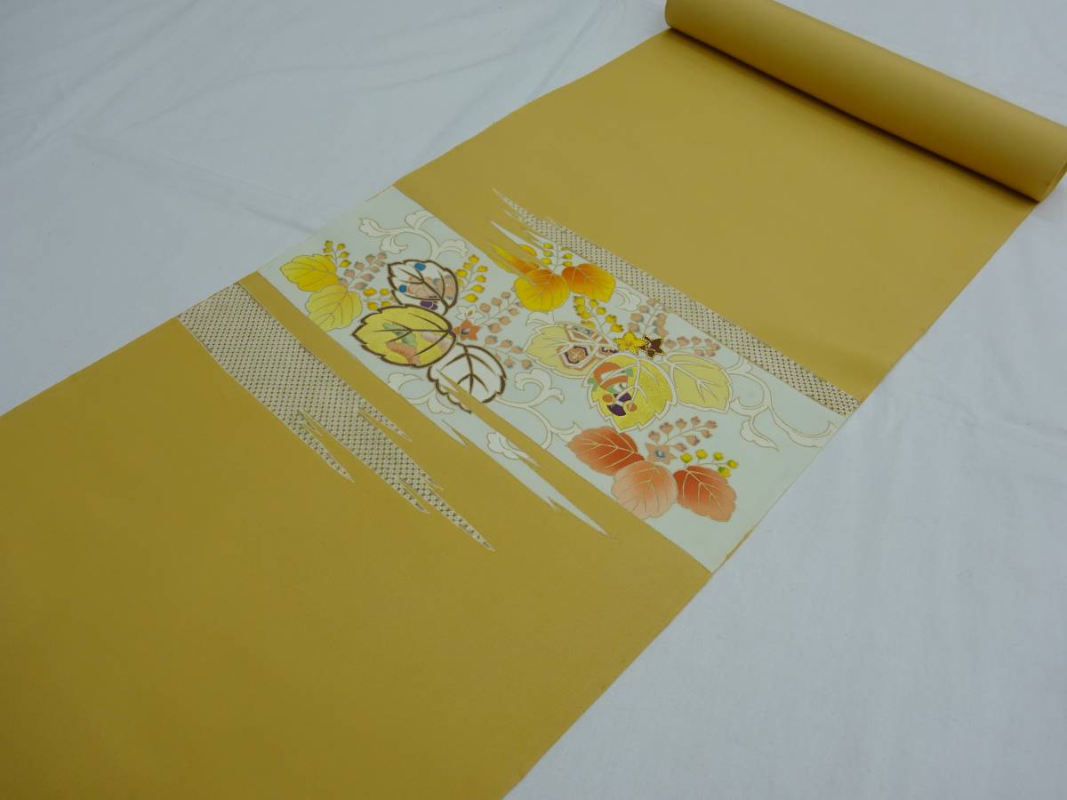 - 新品・未仕立て★京友禅・塩瀬染帯★狐色地に桐文柄です
