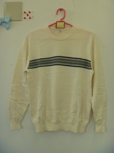 > ●◇メンズ 【ユニクロ】 綿 セーター オフホワイト 胸元にライン(グレー・紺) Sサイズ 綿100%