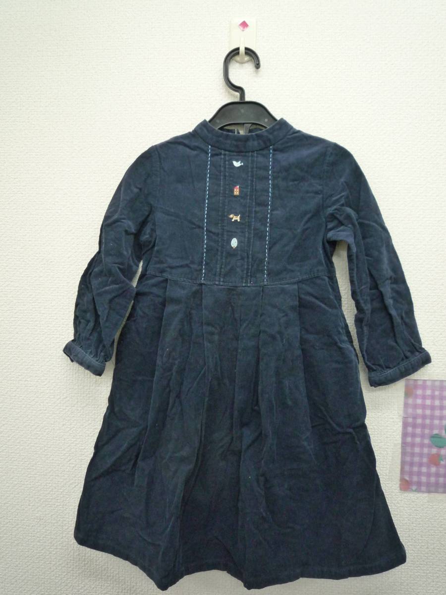 > ★女の子 細コーデュロイネイビーワンピース刺繍入り&カーディガン赤 2枚まとめて
