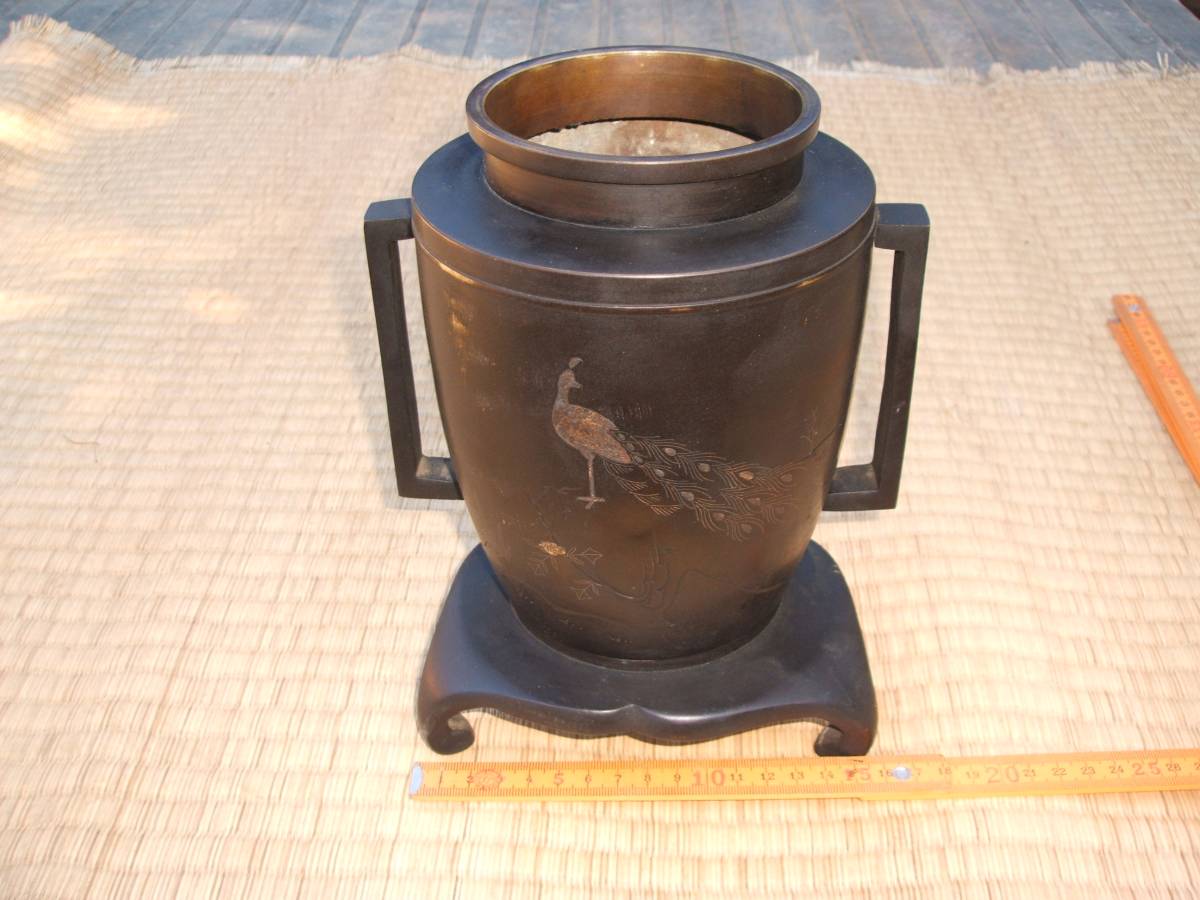 - ■象眼・花瓶・二分割式・銅製・古美術・年代物・アンティーク・コレクション・骨董・飾り