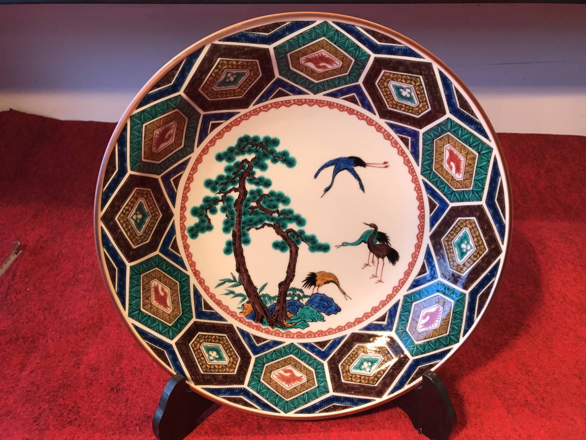 - 絵皿 31cm 松 鶴 骨董 陶器 飾皿 器 記念皿