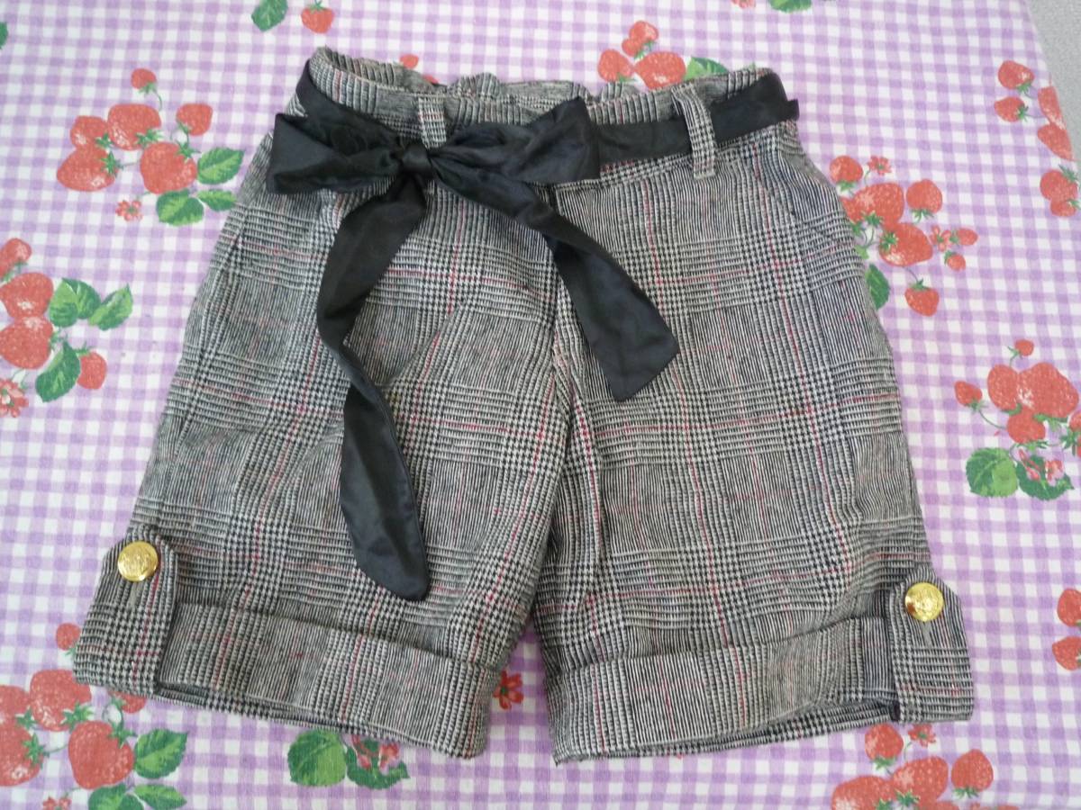 - ★女の子 ショーパン グレンチェック ショートパンツ サテンリボン 飾り金具付き ウエストゴム調節可 サイズ;120㎝