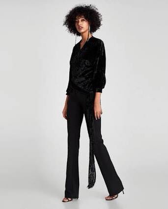 - sale!新品タグ付☆ZARAザラ☆フリンジディテール付きベルベットクロスオーバーブラウスL