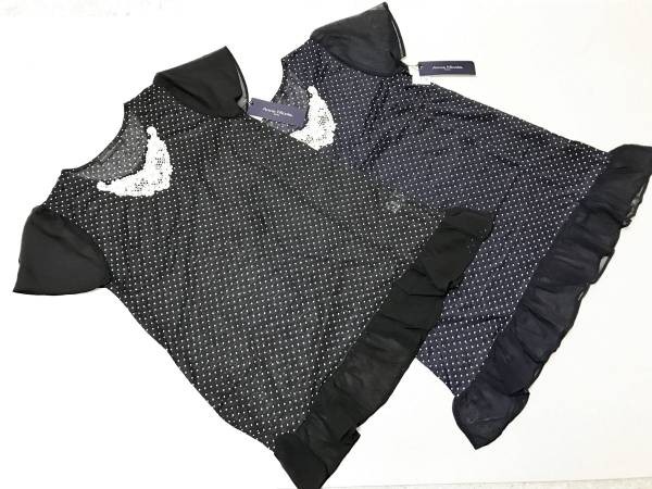 - アンナニコラ【Anna Nicola】シフォンひらひら袖&裾/ドット柄*チュニック*シャツ:黒&紺 Mサイズ*2枚組