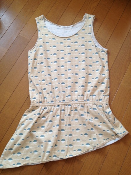 - ★ノースリーブチュニック・ベージュ・楕円水玉・裾斜め・M