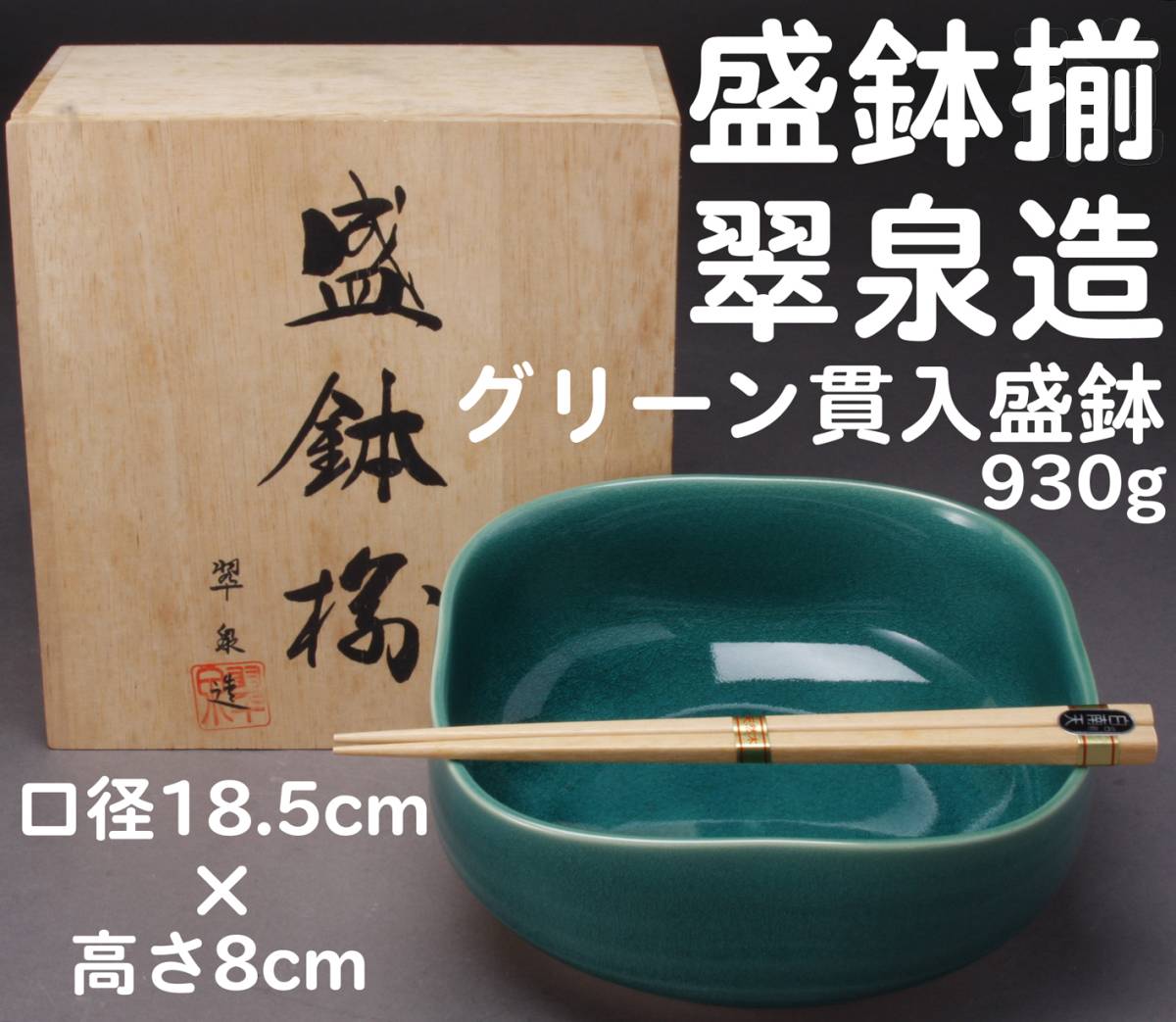 - 翠泉造 SEISEN 盛鉢揃い グリーン貫入盛鉢 共箱・箸付き 経年保管品 KA-6829