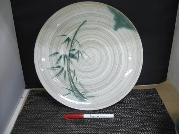 - 【即決】直径31cm 陶器製 盛皿 竹絵織部焼風 大皿 刺身盛り合わせに!