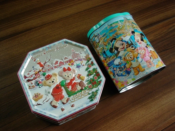 - ディズニー 2012年/2013年頃 空き缶 2個セット ダッフィー シェリーメイ ミッキー ミニー サンタ クリスマス スプリング 八角形 お菓子 /5